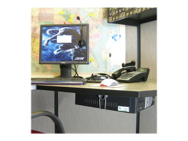 Ce support s'adapte à la plupart des ordinateurs et à une grande variété de surfaces: directement sur un mur ou sous un bureau, à des poteaux, aux rails muraux et au Command Post d'Ergotron. Sa conception, à la fois élégante et sûre, permet de garder votre ordinateur à la bonne température pendant de longues périodes d'utilisation. Fixations de sécurité uniques contre le vol.