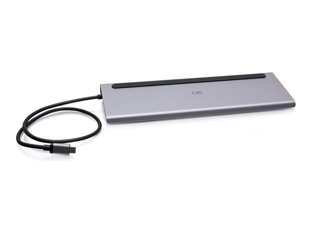 C2G USB-C 10-in-1 Triple Display Docking Station with HDMI, DisplayPort, VGA, Ethernet, USB, SD Card Reader, 3.5mm Audio and Power Delivery up to 100W - 4K 30Hz - Station d'accueil - USB-C - VGA, HDMI, DP - 1GbE