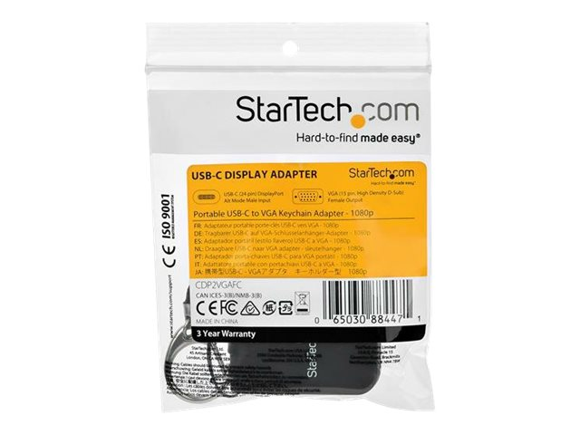 StarTech.com Compact USB C to VGA Adapter, 1080p 60Hz USB Type-C to VGA Video Display Converter with Keychain Ring, Active USB-C DP Alt Mode to VGA Monitor Dongle, Thunderbolt 3 Compatible - USB-C Keychain Adapter (CDP2VGAFC) - Adaptateur vidéo - 24 pin USB-C mâle pour HD-15 (VGA) femelle - noir - support 1080p