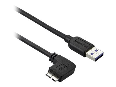 StarTech.com Câble Micro USB 3.0 slim - Cordon USB-A vers Micro-B à angle gauche de 2 m - USB 3.1 Gen 1 (5 Gb/s) - M/M - Câble USB - Micro-USB de type B (M) pour USB type A (M) - USB 3.0 - 2 m - connecteur à angle gauche - noir