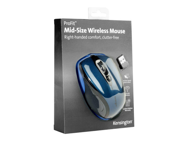 Kensington Pro Fit Mid-Size - Souris - pour droitiers - optique - sans fil - 2.4 GHz - récepteur sans fil USB - bleu saphir
