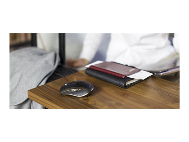 Grâce à la technologie de suivi Logitech Darkfield Laser Tracking, votre souris est compatible avec la plupart des surfaces, même en verre. Le monde devient votre tapis de souris. Vous pouvez laisser le récepteur Logitech Unifying branché sur votre ordinateur portable. Vous pouvez même ajouter d'autres dispositifs. Branchez-le. Oubliez-le. Ajoutez d'autres dispositifs. En savoir plus sur le récepteur Logitech Unifying. La forme compacte et ergonomique associée aux boutons actionnés par le pouce assurent confort et contrôle où que vous soyez.