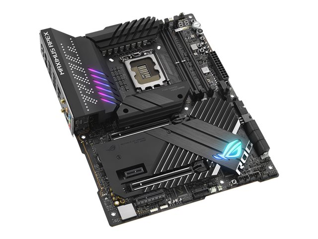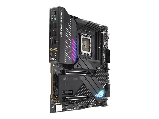 La ROG MAXIMUS Z690 APEX est le choix privilégié de ceux qui recherchent l'alliance parfaite entre vitesse brute et technologie de pointe comme la mémoire DDR5, le PCIe 5.0, et des charges de puissance adaptées aux processeurs avancés les plus performants. Sa structure profilée est conçue pour une latence ultrafaible et une bande passante maximale, afin de permettre aux utilisateurs de découvrir les limites de la performance et d'établir de nouveaux records mondiaux.
