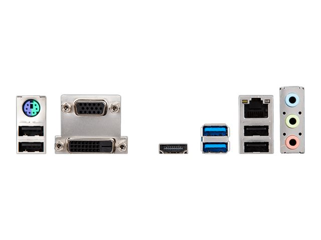 | Interfaces | 1 x HDMI 1 x LAN (Gigabit Ethernet) 1 x DVI-D 2 x USB 3.1 Gen 1 4 x USB 2.0 1 x clavier / souris PS/2 1 x sortie de ligne audio - mini-jack 1 x microphone - mini-jack 1 x entrée de ligne audio - mini-jack 1 x VGA |