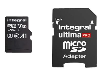 Integral UltimaPro - Carte mémoire flash (adaptateur microSDHC - SD inclus(e)) - 32 Go - A1 / Video Class V30 / UHS Class 3 / Class10 - microSDHC UHS-I INMSDH32G-100/70V30