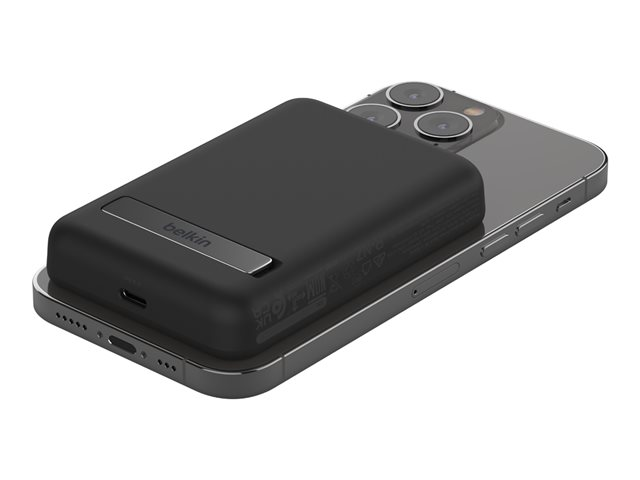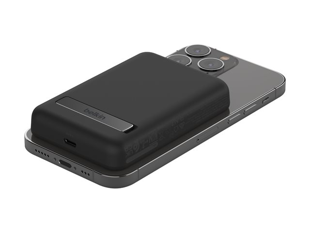 Cette banque d'alimentation sans fil magnétique portable 5K + support délivre une puissance de charge sans fil de 7,5 W à votre appareil, sans câble ni besoin de le connecter à une source d'alimentation. Le support pliable offre un moyen pratique et mains libres de diffuser des flux ou de passer des appels vidéo pendant que vous chargez.