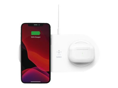 Belkin BOOST CHARGE Dual - Plot de charge sans fil + adaptateur secteur - 15 Watt - blanc - pour Apple iPhone 11, 11 Pro, 11 Pro Max, 8, 8 Plus, X, XR, XS, XS Max; Samsung Galaxy Note10, Note10+, S10, S10+, S10e WIZ008VFWH