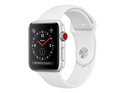 Apple Watch Series 3 (GPS + Cellular) - 38 mm - aluminium argenté - montre intelligente avec bande sport - fluoroélastomère - blanc - taille de bande 130-200 mm - 16 Go - Wi-Fi, Bluetooth - 4G - 28.7 g
