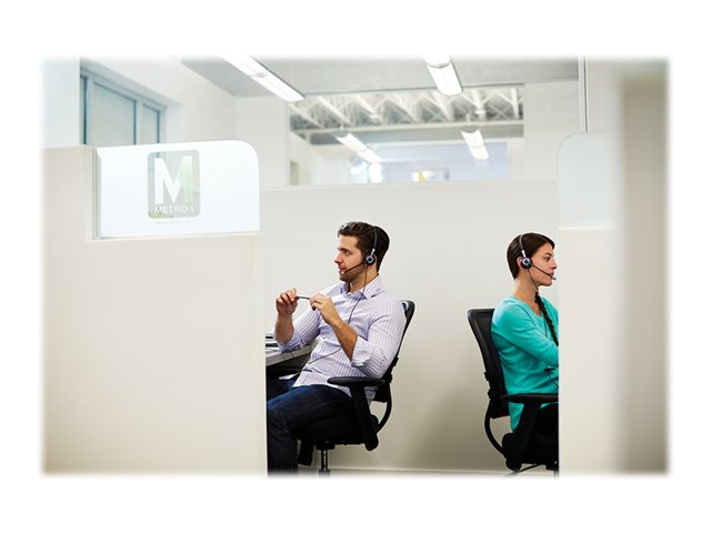 Le BIZ 2400 II offre une qualité d'écoute irréprochable tant en émission qu'en réception pour une expérience d'utilisation optimisée. Grâce à son poids jusqu'à 40% inférieur à celui des micro-casques concurrents et à la faible pression de son serre-tête, l'agent peut se concentrer pleinement sur sa conversation tout en profitant d'un confort inégalé. Le Jabra BIZ 2400 II QD Duo est un micro-casque à deux écouteurs doté d'une prise de déconnexion rapide QD (Quick Disconnect) permettant d'assurer une connexion instantanée avec un large éventail de téléphones fixes.
