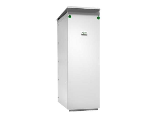Armoire à batterie modulaire pour une durée de fonctionnement étendue pour les onduleurs avec batteries internes. L'armoire est livrée sans batteries, celles-ci doivent donc être achetées séparément. Il est possible d'installer et de contrôler jusqu'à 6 chaînes de batteries dans l'armoire.