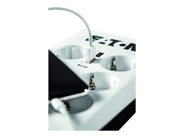 Eaton Protection Box 6 USB DIN - Protection contre les surtensions - CA 220-250 V - 2500 Watt - connecteurs de sortie : 6 - blanc