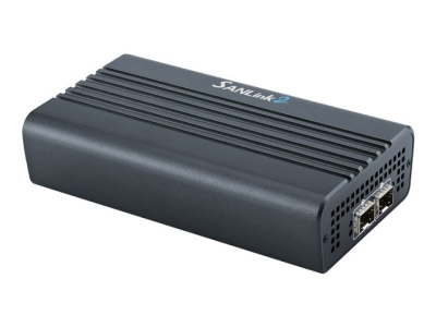L’adaptateur SANLink2 Thunderbolt 2 FC de 16 Gbit/s est doté de deux ports fiber channel qui négocient automatiquement avec les appareils FC de 16 Gbit/s et d’autres plus lents et est compatible avec les appareils SFP avec câble optique et les câbles SFP vers SFP de 4 Gbit/s d’Apple. L’adaptateur SANLink2 s’exécute sur une bande passante en duplex intégral sur une connexion Thunderbolt 2 unique et offre des vitesses FC natives intégrales. Les deux ports Thunderbolt 2 permettent à l’adaptateur SANLink2 de connecter en série un total de six appareils Thunderbolt ou Thunderbolt 2. L’adaptateur SANLink2 permet à tout ordinateur doté de la technologie d’entrée-sortie Thunderbolt de se connecter à un réseau de stockage SAN fiber channel.