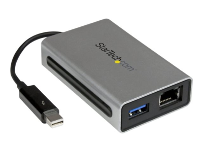 L'adaptateur Thunderbolt vers Gigabit Ethernet + USB 3.0 TB2USB3GE vous permet d'étendre la connectivité de votre MacBook ou de votre ordinateur portable au moyen d'un adaptateur unique et compact Gigabit Ethernet et USB 3.0 pour une performance fiable, des diverses possibilités de connexion et une portabilité robuste.
