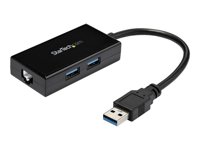 StarTech.com Adaptateur réseau USB 3.0 vers Gigabit Ethernet avec hub USB 3.0 à 2 ports (USB31000S2H) - Adaptateur réseau - USB 3.0 - Gigabit Ethernet x 1 - noir