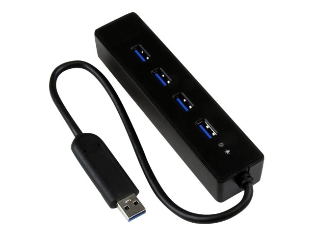 Ce hub portable à 4 ports USB 3.0 et avec câble intégré transforme un port USB 3.0 unique en quatre ports permettant de brancher davantage d'appareils à votre ordinateur.