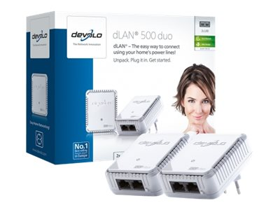 Avec le dLAN 500 duo de devolo, partez du bon pied dans la création de votre propre réseau à domicile. Grâce à la facilité de déploiement du réseau via les câbles électriques de la maison, Internet est disponible dans chaque pièce de la maison en un rien de temps. Les deux connecteurs Ethernet de l'adaptateur permettent de raccorder deux périphériques directement: par exemple l'ordinateur et l'imprimante réseau au cabinet de travail, ou la télévision connectée et la console de jeu du salon. Le boîtier compact assure le positionnement discret et souple dans chaque prise de courant murale. Bien entendu, le réseau peut être étendu à tout moment en utilisant des adaptateurs additionnels. Ainsi, la technologie dLAN pionnière prolonge l'accès Internet dans chaque pièce. Dès maintenant, plus de 16 millions de clients satisfaits font confiance à devolo - le N° 1 pour les réseaux à domicile CPL.