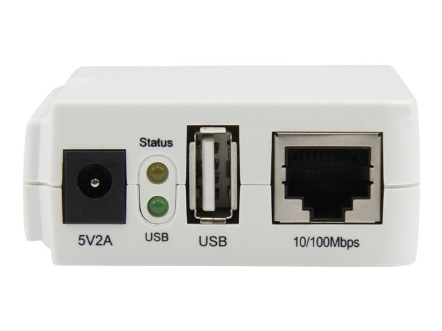 StarTech.com Serveur d'impression USB 2.0 sans fil N avec port Ethernet 10/100 Mb/s - 802.11 b/g/n et 150 Mb/s - Blanc - Serveur d'impression - USB 2.0 - 10/100 Ethernet x 1 - blanc PM1115UWEU