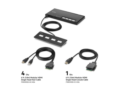 Belkin Modular Secure Single Head - Commutateur KVM - 4 x KVM port(s) - 1 utilisateur local - de bureau - Conformité TAA F1DN104MOD-HH-4