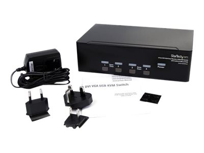 Le commutateur KVM DVI VGA à 4 ports pour deux écrans, SV431DDVDUA, vous permet de contrôler quatre ordinateurs à deux écran à l'aide d'un seul ensemble de périphériques USB (souris et clavier).