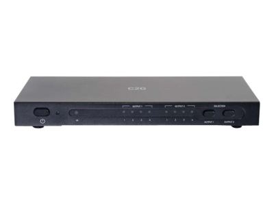 Le commutateur de matrice 4K30 pour 4X2 HDMI est un commutateur de matrice à 4 entrées, 2 sorties. Prenant en charge des vidéos jusqu’à 4k30, il est idéal pour les applications commerciales légères selon la norme HDMI 1.4. Solution parfaite pour connecter et basculer entre des ordinateurs, lecteurs Blu-ray[TM], consoles de jeux, décodeurs câble et satellite, et récepteurs audio/vidéo. Ce produit offre une grande souplesse au niveau du contrôle grâce aux boutons-poussoirs manuels situés de manière pratique à l’avant du commutateur de matrice, ou à l’aide d’une télécommande IR, ce qui permet de passer rapidement d’une source vidéo à une autre. Les sorties peuvent être connectées directement aux écrans ou sur les grandes distances, elles peuvent être rallongées via HD BaseT. Le commutateur de matrice est conforme à HDCP 1.4 et prend en charge les résolutions 4K UltraHD jusqu’à 3840x2160 à 30 Hz avec sous-échantillonnage de chrominance 4:4:4, traitant un total de taux de données HDMI jusqu’à 10,2 Gbits/s. Remarque : HD BaseT vendu séparément.