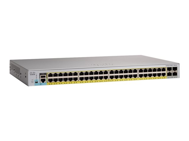 Le commutateur réseau Cisco Catalyst 2960L-48PQ-LL est un commutateur Gigabit Ethernet fixe de qualité professionnelle conçu pour les PME. Ce commutateur réseau sécurisé est idéal pour les déploiements stratégiques liés à l'Internet des objets (IoT). Il fonctionne avec le logiciel Cisco IOS et prend en charge la gestion simple des équipements via l'interface de ligne de commande (CLI) et via une interface web intégrée.