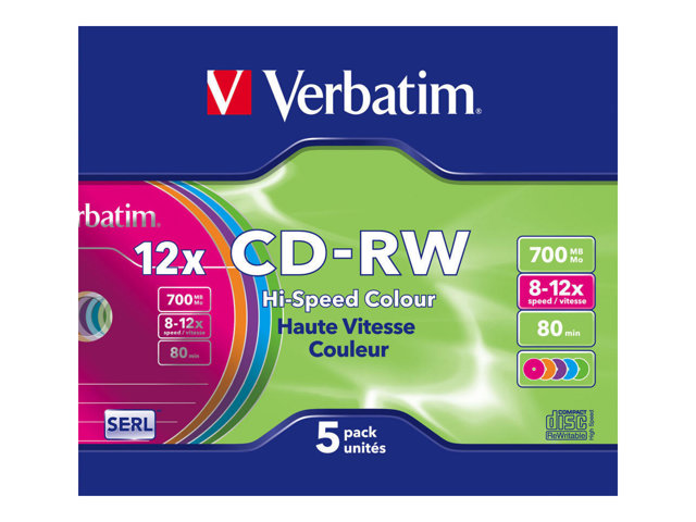 Verbatim DataLifePlus Hi-Speed - 5 x CD-RW - 700 Mo (80 min) 8x - 12x - boîtier CD étroit